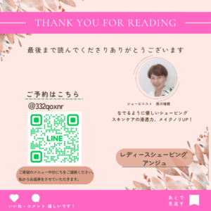 2025/07/19 「うわ!全然違う!」 シェービングの後、鏡を見たお客様がそう言って下さるのが何よりの喜びです。 声に出さない方も、何度もお顔を触ったり、鏡を見て「にこっ」と笑顔になられるのをみると 嬉しくなります。 シェービングすると明るく、透明感が出ます。 それは、お顔全体のイメージ&透明感に大きく影響します。 うぶ毛を除くと、驚くほど肌がスベスベ、白くなります。 メイクのノリもよくなり、お化粧崩れもしにくくなります。 基礎化粧品の浸透もUPして、肌のうるおいがUP 気持ちよく、美肌になれるシェービング。 香川県高松市で、完全個室、予約制の女性専用シェービングエステサロンをしています。 貴女だけの落ち着いた空間で、寝てしまうほど気持ちいいシェービング。ツルツルお肌に プロのシェービングはセルフとは違う仕上がり♪ぜひ体験ください。 国家資格の「理容師免許」を持つ女性理容師がしている、厚生労働省・保健所認定のシェービングサロン ご予約・ご相談はインスタDM・公式ライン。から @332qoxnr 上記のアドレスを検索して、ご希望のメニューや日にちをご連絡ください。 私からお返事をさせていただきます。 レディースシェービング アンジュ 香川県高松市国分寺町新名1652-3 090-5712-7781