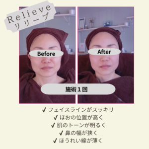 たった1回でこの変化! Reliveリリーブ フェイシャル Before/Afterをご覧ください ✔ フェイスラインがスッキリ ✔ ほおの位置が高く ✔ 肌のトーンも明るく ✔鼻の幅が狭く ✔ ほうれい線が薄く ✔ 目元もパッチリ開いて見える 10工程の手技で念入りに、丁寧にアプローチ。 肌がグッと引き上がる新感覚フェイシャルです 「気持ちよかった」 「え、1回でここまで変わるの?」 「鏡を見てびっくりしました!」 そんなお声も続出中 ただいま体験モニター募集中 ご希望の方はDMまたはLINEからお気軽にご連絡ください #ハリジェンヌ #刺さない鍼 #金鍼フェイシャル #小顔フェイシャル #ビフォーアフター #フェイスラインすっきり #大人のたるみケア #たるみ改善 #新感覚エステ #肌質改善